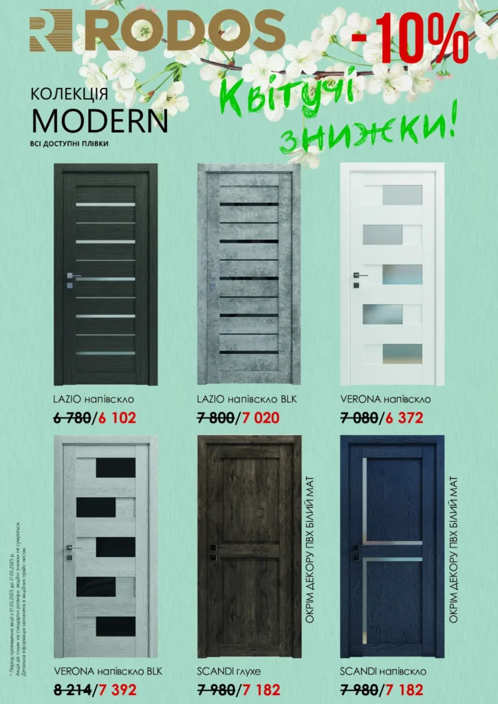 Двері Rodos Modern — це поєднання сучасного стилю та надійної якості. Тепер колекція Modern доступна зі знижкою 10%.