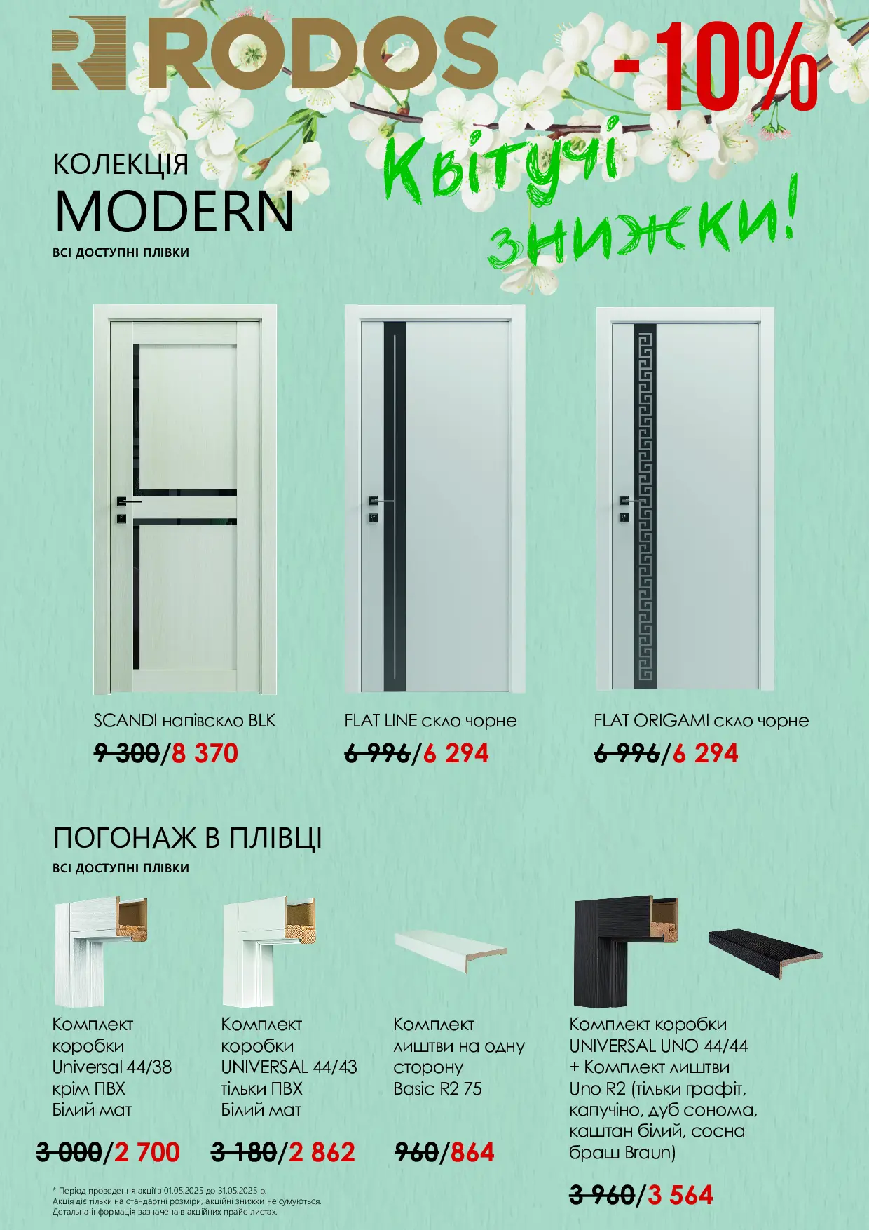 Двері Rodos Modern — це поєднання сучасного стилю та надійної якості. Тепер колекція Modern доступна зі знижкою 10%.