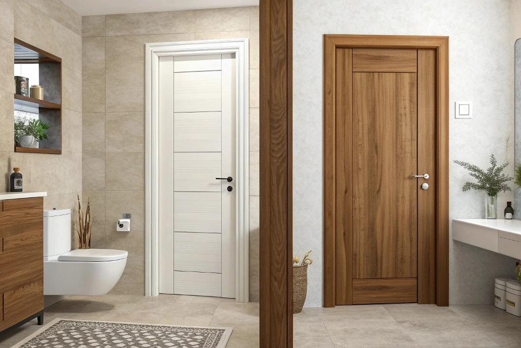 Ванна кімната — це середовище з високою вологістю, особливо після душу або ванни. Тому двері повинні бути виготовлені з матеріалів, які не деформуються та не розбухають від вологи.